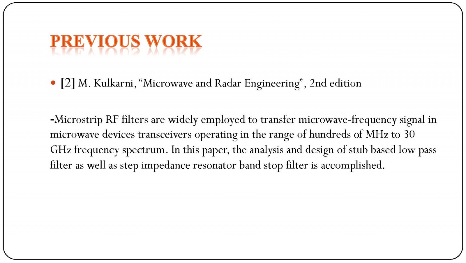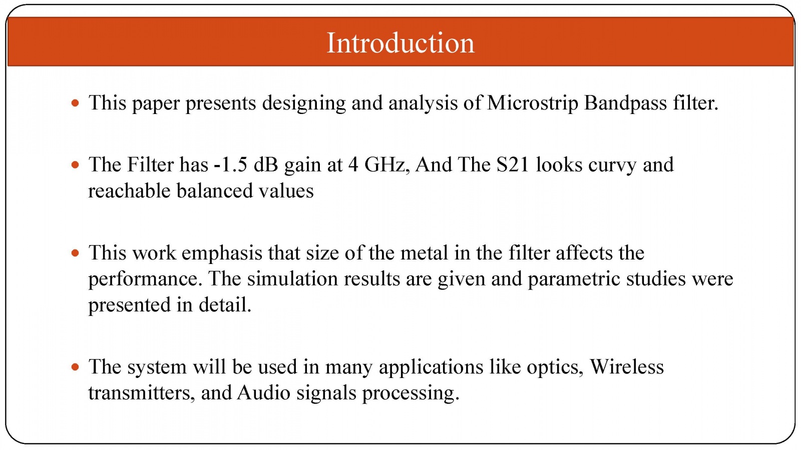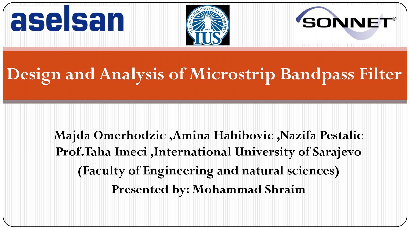 Majda Omerhodzic - Design and Analysis of Microstrip Bandpass Filter 17 May, 2021 By admin Download Presentation File