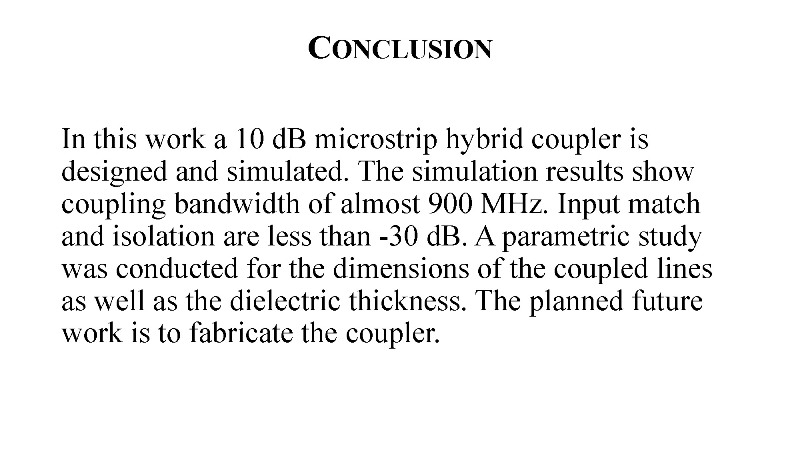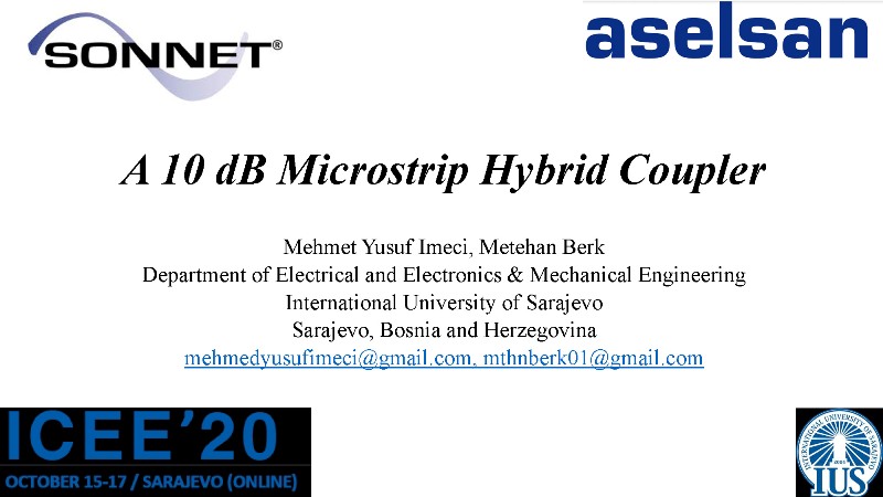 Mehmet Yusuf Imeci - A 10 dB Microstrip Hybrid Coupler 15 Oct, 2020 By admin Download Presentation File